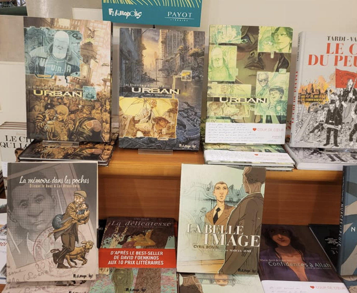 Nathalie, nous parle BD son rayon de la librairie Payot à Lausanne